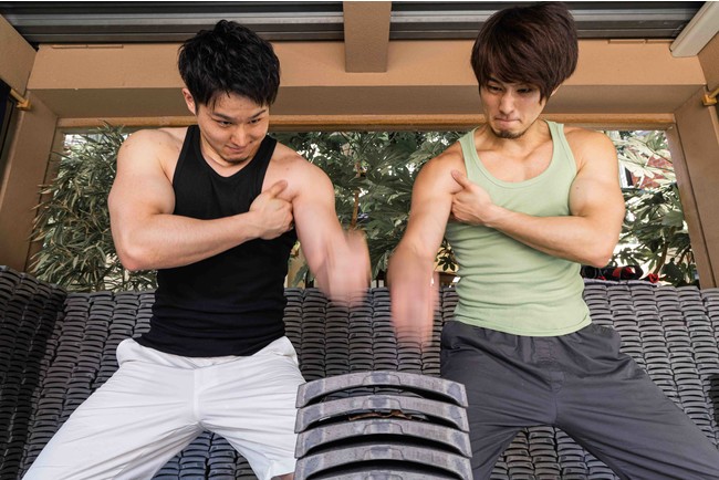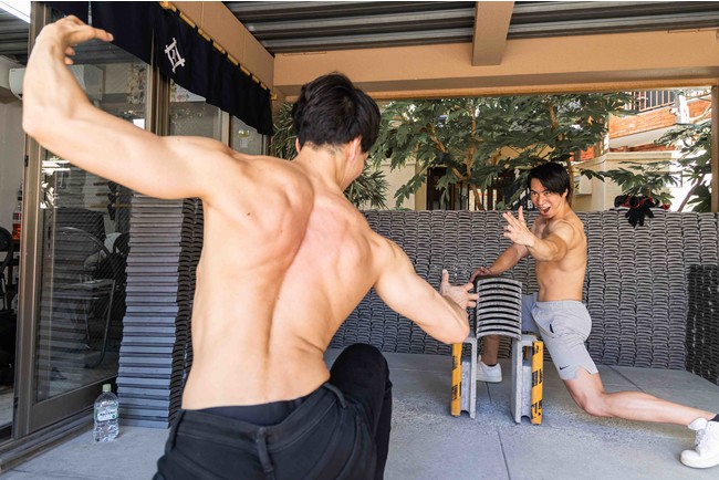 「阿吽の呼吸で瓦を割る双子マッチョ」