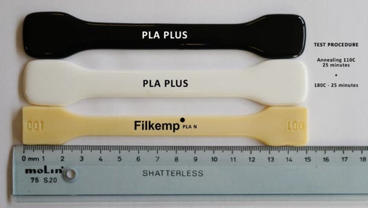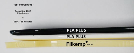PLA PLUSは、110℃の温度で変形が開始し、180℃では完全に溶融しています。それに対してPLNは温度に対して高い耐性があります。