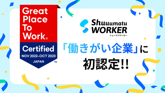 株式会社シューマツワーカー(本社:東京都渋谷区、代表取締役:松村 幸弥)は、Great Place To Work(R) Institute Japan(本社:東京都品川区、代表取締役社長:荒川 陽子、以下 GPTWジャパン)が発表した2023年版「働きがいのある会社」小規模部門(25~99人)に初めて認定されたことをお知らせします。