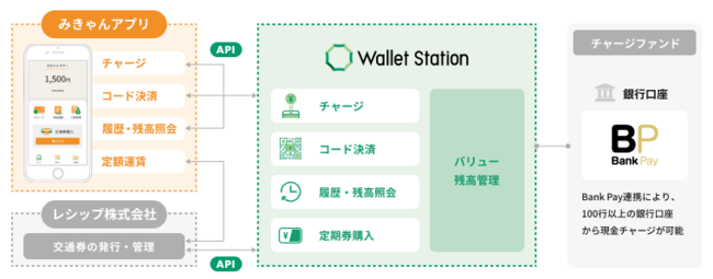 ウォレットステーションを活用することで、アプリ上で銀行口座からのチャージ(※4)が完了するほか、デジタル乗車券のスピーディーなサービスインを実現しています。