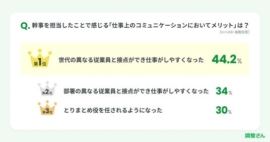 調査結果3.幹事担当後の仕事上のメリット1位「世代の異なる従業員と接点」