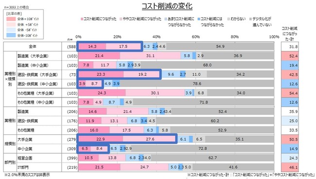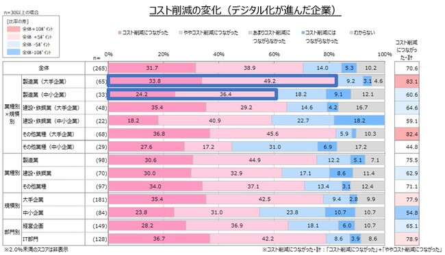 DXによってコスト削減を実現した企業は全体でわずか3割、大企業と中小企業の格差も浮き彫りに