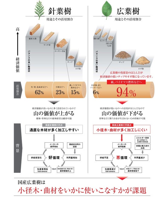 国産針葉樹と広葉樹の活用状況【現状と課題】