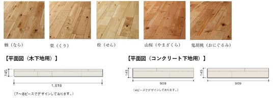 希少な国産広葉樹5樹種を採用。木下地用とコンクリート下地用があります。