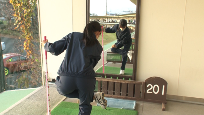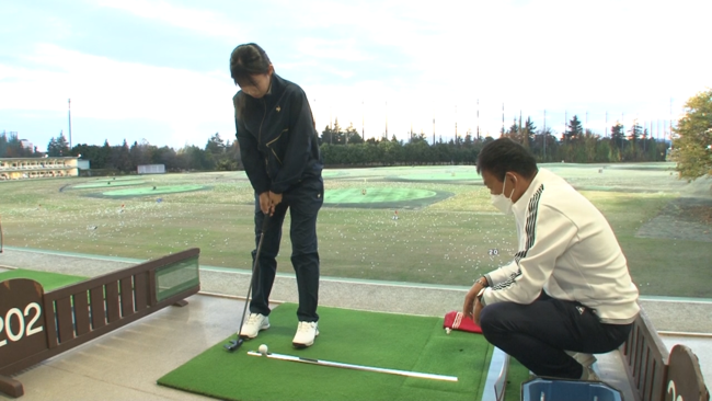 目指すはツアー初優勝。その練習背景では父と二人三脚で励む姿があった。