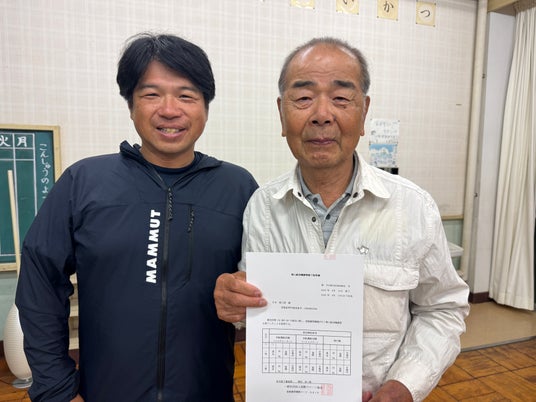 IDA代表理事榎本(左)と今回修了された84歳の受講者