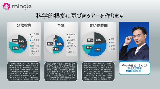 中国人富裕層向けインバウンドツアーを増やしているmingle株式会社(富山県:代表取締役 百塚 万里子)は、インバウンドに取り組む事業者や自治体が急増している流れから、誘客計画・ツアー構築・戦略的売上向上計画等に繋がる中国人富裕層にリサーチしたデータを一部公開します。他国よりも、他の地域よりも、戦略的に誘客し、高経済効果に繋がるよう上手くご活用ください。