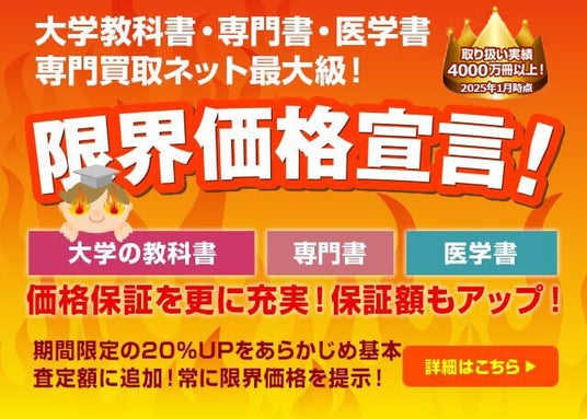 不要になった大学教科書・専門書・医学書・資格試験参考書・問題集、予備校テキスト・教材をお持ちの方は、ぜひこの機会に「専門書アカデミー」をご利用いただければ幸いです。