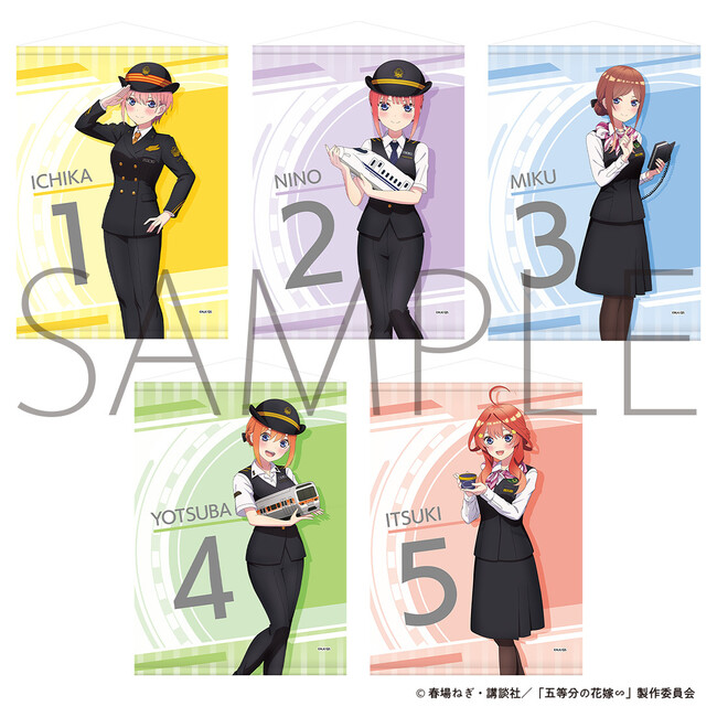 中野家の五つ子が、JR東海の新幹線乗務員や駅員の制服に身を包んだ描き下ろしイラストを使用した新作グッズが発売されます。