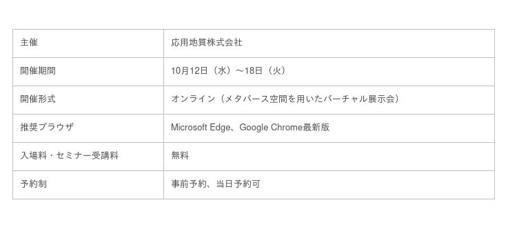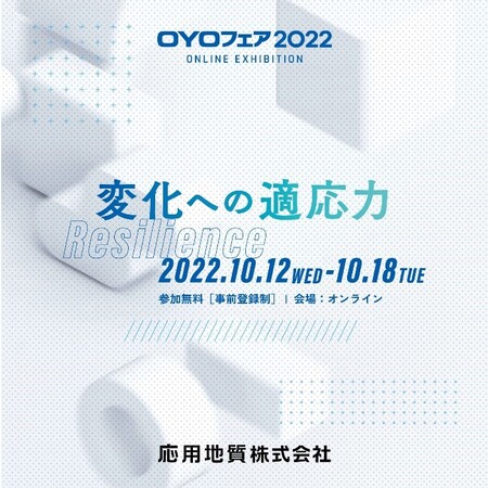 応用地質株式会社(本社:東京都千代田区、代表取締役社長:成田 賢、以下「弊社」)は、10 月 12日(水)~18 日(火)までの 7 日間、バーチャル展示会『OYOフェア2022』 を開催いたします。