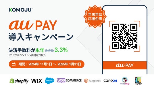 デジタル決済プラットフォーム「KOMOJU(コモジュ)」を展開する株式会社 DEGICA(本社:東京都武蔵野市、代表取締役社長:モモセ・ジャック・レオン)は、2024年11月1日より「au PAY 導入キャンペーン」を開催します。