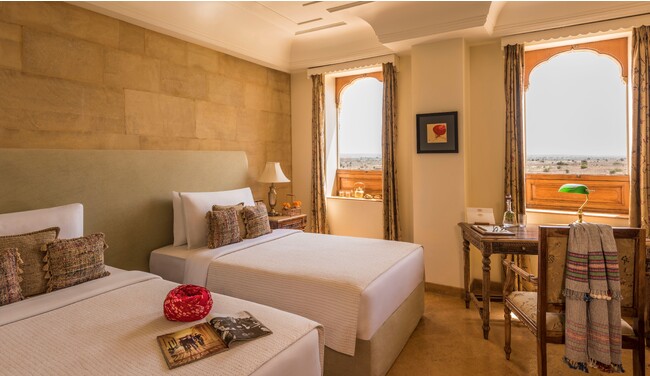 タール砂漠への玄関口であるスリャガー、ジャイサルメールは、静寂と星空に包まれた自由と発見の場所です。インドの過去の伝統を大切に守りながら、モダンに構成されたこの要塞スタイルのリゾートは、本物の宮殿建築を思わせる広いベランダに面した90の客室とスイート、3つのレストラン、そして豪華なスパを備えています。サステナビリティへの取り組みとしては、太陽光発電のためのソーラーパーク、地域の自然遺産の保護、地元の村の少女や地域の青少年の教育、女性のエンパワーメント、起業、平等を支援する取り組みが挙げられます。