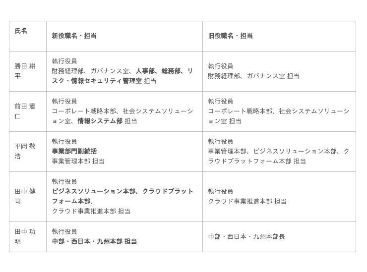 日本ビジネスシステムズ株式会社(本社:東京都港区 代表取締役社長:牧田幸弘 以下、JBS)は、2022年4月1日付で下記のとおり役員人事を実施しましたことをお知らせします。