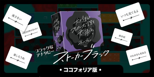 札幌市にあるボードゲーム・謎解きゲームのメーカーClaGla(株式会社クラグラ)は、スマートフォン対応のTRPG向けクラウドツール「ココフォリア」で遊べる『たった今考えたプロポーズの言葉を君に捧ぐよ。ココフォリア版』の拡張セット『ストーカーブラック』を9月26日(木)に発売しました。