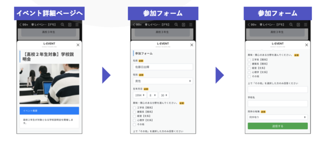 今回新たに「Lイベント」を導入したことで、オープンキャンパスの予約申し込み・参加がこれまで以上に手軽におこなえるようになりました。