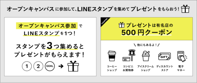 オープンキャンパスをLINEでカンタンに運営できるようになりました。LINEスタンプラリーを活用した施策も実施しています。