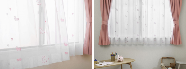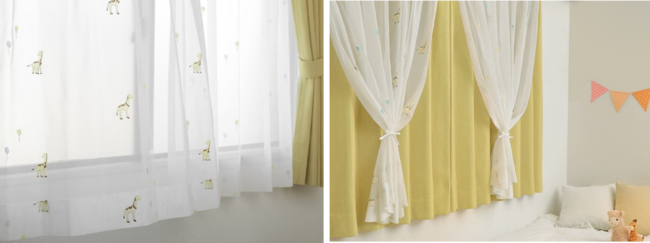 パーフェクトスペースカーテン館では、「子供と一緒に選ぶ」をコンセプトに、わくわくするデザインのキッズカーテンを種類豊富に取り揃えております。そんなキッズカーテンに、当店オリジナルデザインの“キリン・うさぎ柄刺繍”のレースカーテンが新登場いたします!今にも子供達の笑い声が聞こえてきそうな、とっておきの可愛らしいデザインと、細部まで丁寧さにこだわった自慢のレースカーテンが出来上がりました。ぜひお子さんと一緒に子供部屋カーテンをお選びください!