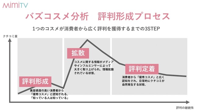 ※MimiTVでは、SNS上でコスメの情報が拡散され評判を形成する過程を独自に分析いたしました。