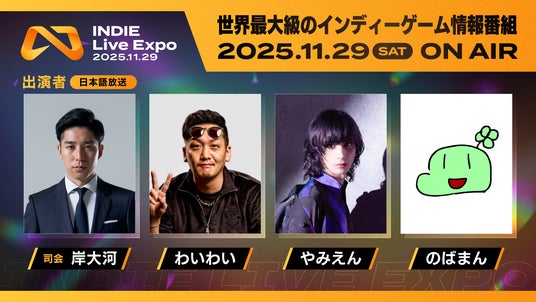 また、日本語放送ではおなじみとなった、わいわいさん、のばまんさん、やみえんさんも引き続き登場し、インディーゲームファンならではの視点や、ゲーム愛あふれるコメントで番組を盛り上げていただきます。