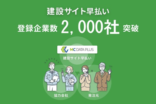 株式会社MCデータプラス(東京都渋谷区、代表取締役社長:飯田正生)が提供する請求書買取サービス「建設サイト早払い」は、2024年7月末時点の登録企業数が2,000社を突破いたしました。
