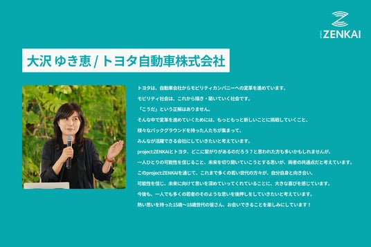 一般社団法人HASSYADAI social(以降、ハッシャダイソーシャル)は、トヨタ自動車株式会社(以降、トヨタ自動車)との共同事業として2022年1月より取り組みを続けてきた、学歴や偏差値の枠を超えた若者の可能性の探究・最大化・自己実現を後押しするオンラインの対話・実践型プログラム「project:ZENKAI」について、第5期目の提供を開始いたします。ハッシャダイソーシャルは本取り組みを通じて、「若者が自らの人生を、自らの手で切り拓いていける社会」の実現を目指します。