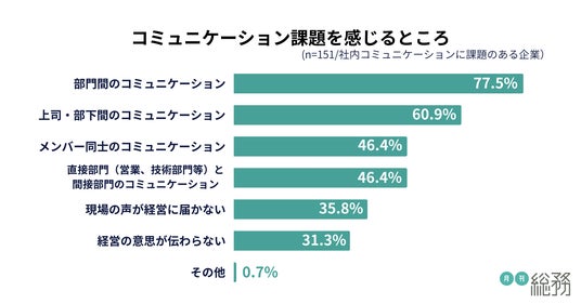 ・社内コミュニケーションの課題は「社員の参加意識の醸成」が最多