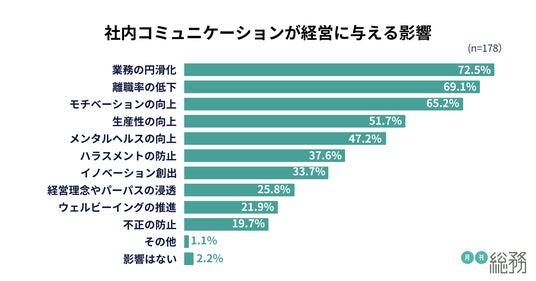 ・社内コミュニケーションが経営に与える影響は「業務の円滑化」「離職率の低下」など