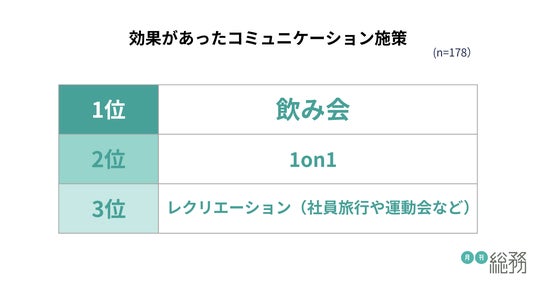・効果があったコミュニケーション施策 1位は「飲み会」