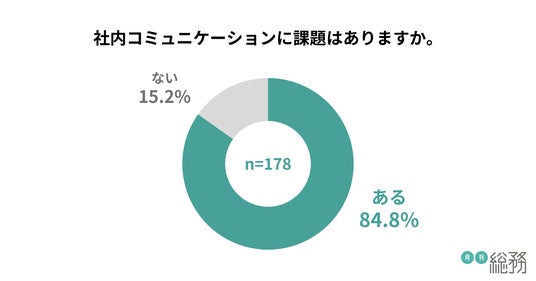 社内コミュニケーションに課題があるか尋ねたところ、84.8%が「ある」と回答しました(n=178)。