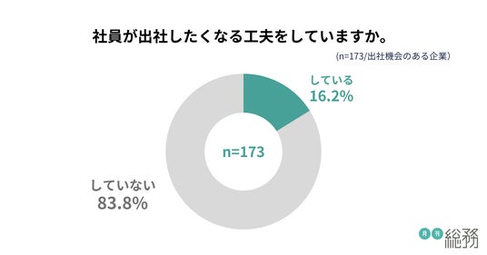 社員が出社したくなる工夫をしているか尋ねたところ、16.2%「はい」と回答しました(n=173/出社機会のある企業)。
