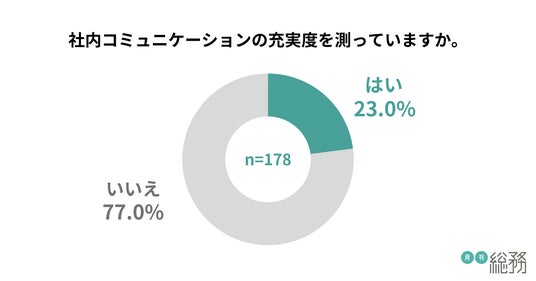 社内コミュニケーションの充実度を測っているか尋ねたところ、23.0%が「はい」と回答しました(n=178)。