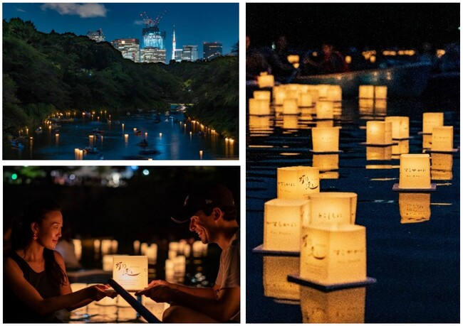 一つ一つの灯ろうには、人々の感謝や希望、平和への願いが込められ、「贈り灯」として水面に放たれます。東京の中心である千代田区にいながら、都会の喧騒を離れ味わうことができるこの幻想的な世界を、ぜひ体感してみませんか。