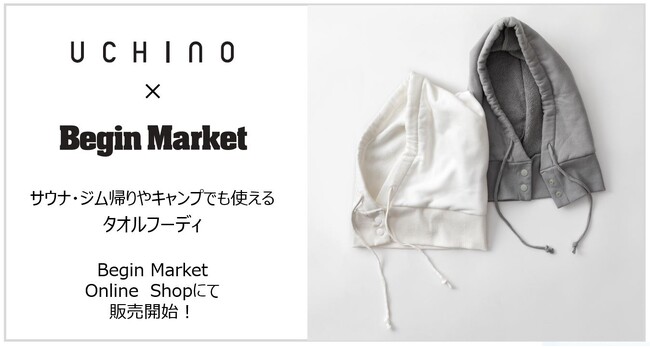 内野株式会社(本社:東京都中央区/代表取締役社長:内野信行)は、株式会社Begin(本社:東京都千代田区/代表取締役社長:波多和久)が展開するオンラインセレクトショップ「Begin Market」とコラボし、多目的に使えるタオルフーディをリリースしたことをお知らせいたします。おしゃれ感度が高く、アクティブなBegin Marketユーザーの声を拾いあげ開発した秀逸なアイテムです。サウナやジム帰り、またプール上がりの濡れた髪を乾かす時など、あらゆるシーンで活躍します。Begin Marketにて現在販売中です。(https://market.e-begin.jp/)