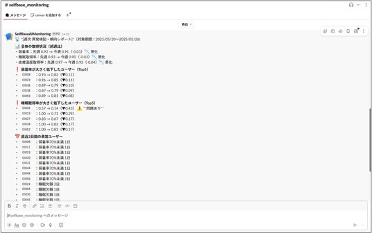 <画面イメージ3:データ取得状況の分析結果をslackに通知>