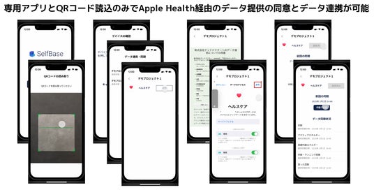 新たに追加された被験者向けアプリにより、被験者はアプリをダウンロードし、QRコードを読み取るだけで、Apple Health経由でのデータ提供の同意および連携設定を簡単に完了できます。