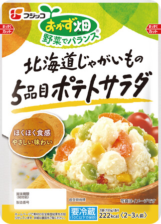 フジッコ株式会社(本社:神戸市中央区/代表取締役社長執行役員:福井正一)は、多品目の野菜や豆が手軽に摂れる包装惣菜「おかず畑(R)」の提供を通して、より手軽に野菜を食卓にお届けし、お客様のさらなる健康の促進に取り組んでいます。この度、「おかず畑(R)」サラダシリーズの新商品として、5種の具材を使用しやさしい味わいに仕上げた「おかず畑(R) 5品目ポテトサラダ」を2023年9月1日(金)より新発売いたします。