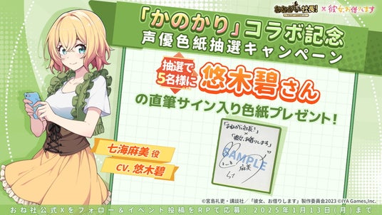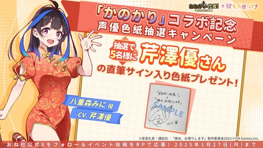 コラボ記念として、『おねがい社長!』の公式X(旧:Twitter)アカウントで声優サイン入り色紙プレゼントキャンペーンを開催予定!
