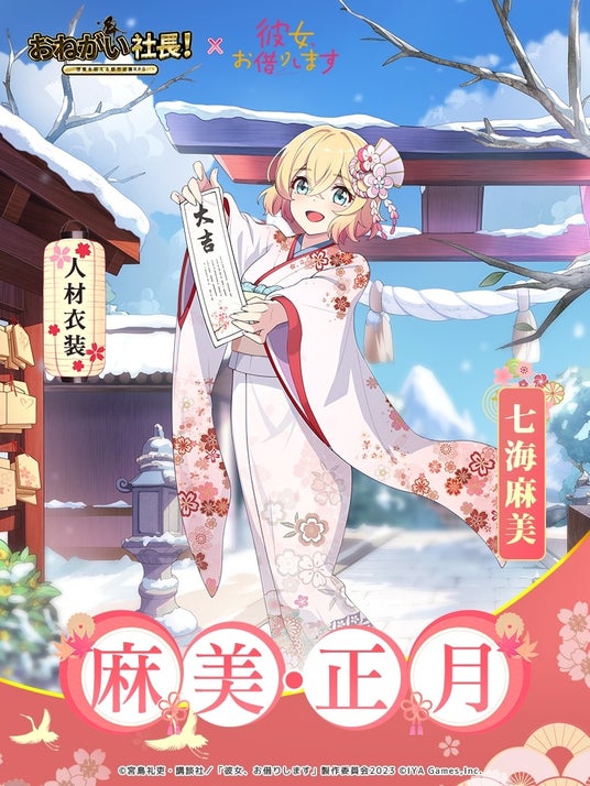 IYAGAMESのスマホ向けの人気会社経営シミュレーションゲーム『おねがい社長!』と、人気アニメ『彼女、お借りします』とのスペシャルコラボの実施が決定!2024年12月28日(土)からコラボイベントを開催します!