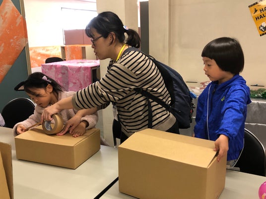 当社の様々な商品を使用して、商品を選んでもらい、その商品のサイズに合った段ボールをもってきて、組み立てから緩衝材を入れ、送り状には実際に住所等も記入し、発送する前段階までの体験をしました。