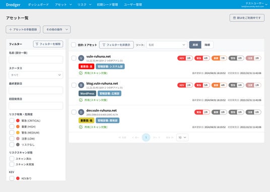 安全なWebサイトを実現するために脆弱性診断とクラウド型WAFを提供する株式会社セキュアスカイ・テクノロジー(本社:東京都千代田区、代表取締役:大木 元 以下、SST)が提供する、国産EASM(*1)クラウドサービス「Dredger(ドレッジャー)」の機能において、新たに発見されたアセットの差分検出やタグ機能など、4つの新機能を2024年8月までにアップデートしました。