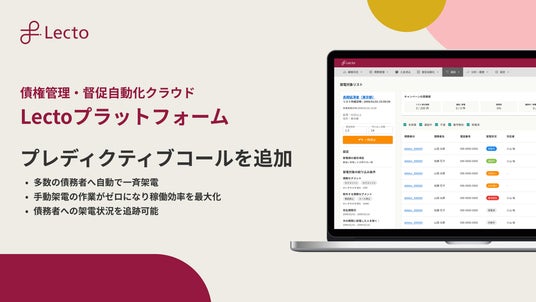 債権管理業務のDXを推進するLecto株式会社(本社:東京都渋谷区、代表取締役社長:小山裕、以下「Lecto(レクト)」)は、債権管理・督促業務の自動化および一元管理ができる「Lectoプラットフォーム」において、架電作業をシステムに任せオペレーターが対話に集中できる環境をつくる「プレディクティブコール」を追加したことをお知らせします。