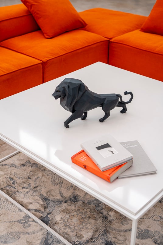 日本の折り紙を現代的で革新的に再解釈した「Origami」。百獣の王ライオンや、まさに突撃しようとする雄牛の雄々しい肢体や角、鬣までが折り紙のように平面で形成されています。