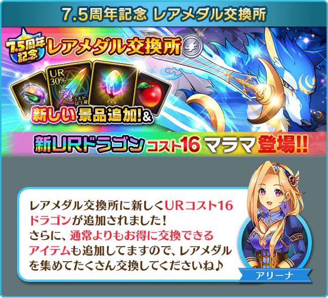 レアメダル交換所にURコスト16新ドラゴン登場&景品追加