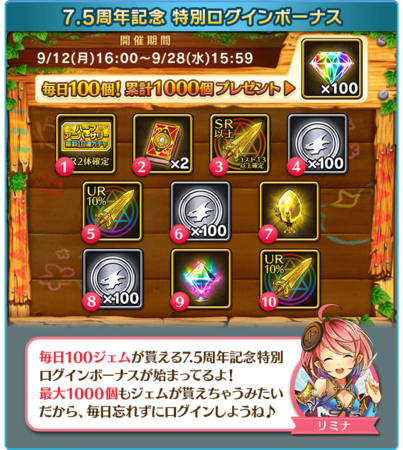 さらに毎回無償ジェムを100個、最大1000個獲得可能です。