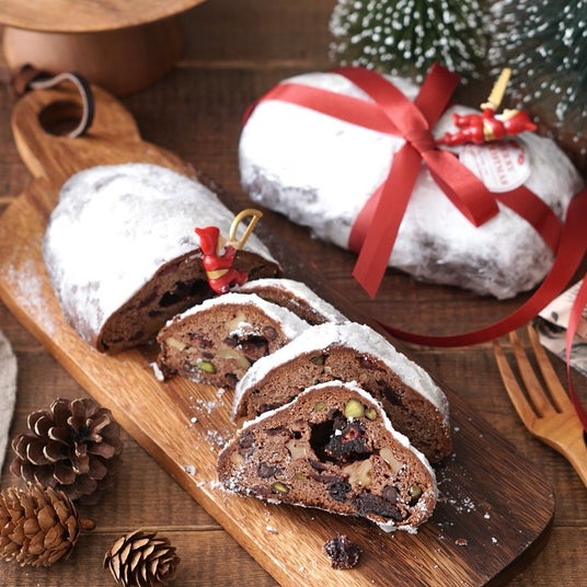 【お酒とスパイス未使用】 たっぷりチョコの濃厚シュトーレン本格的なシュトーレンが苦手なお子さんでも食べられる、スパイスとお酒を使わないシュトーレン。