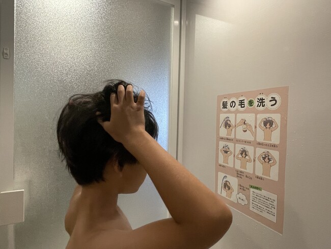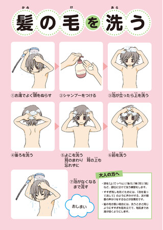 【髪の毛を洗うのポスター】お風呂の壁に貼っています。
