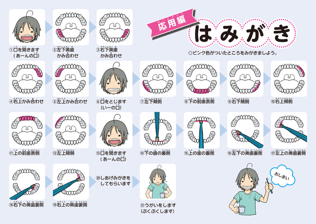 「横みがき」から始めてみましょう。一人でみがけるようになっても、ときどき大人がみがき方のチェックをしましょう。