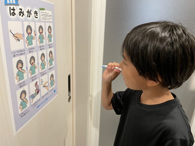 まずは大人と一緒に、なれてきたらひとりで何度も繰り返し練習することで、身辺自立のスキルを楽しく身につけます。