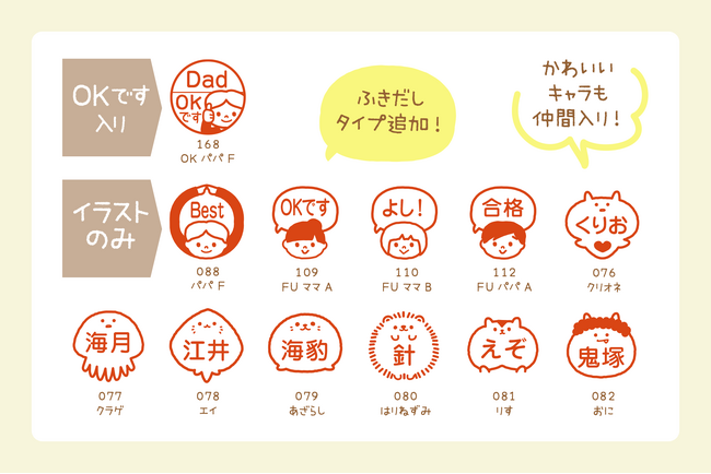 パパ・ママに加え、じぃじ、ばぁば、大阪のおばちゃんなど、ファミリーで使えるデザインを増やしました。