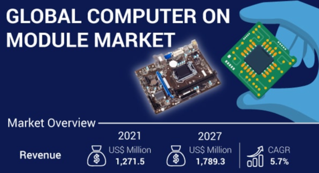 コンピュータ・オン・モジュールの世界市場は、2027年には1,789.3百万米ドルに達すると予測されています。モジュール型コンピュータの世界市場は、予測期間中に5.7%のCAGRで成長すると予測されています。